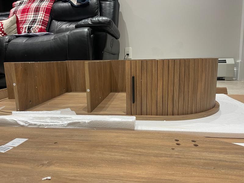 The coffee table is super cute. Took about 40 minutes to assemble it wasn’t that bad to put together. It is a super cute design and has some storage inside the table. One thing I will say is it is very low to the ground I wish it were a little taller. Other than that very nice sleek design.
