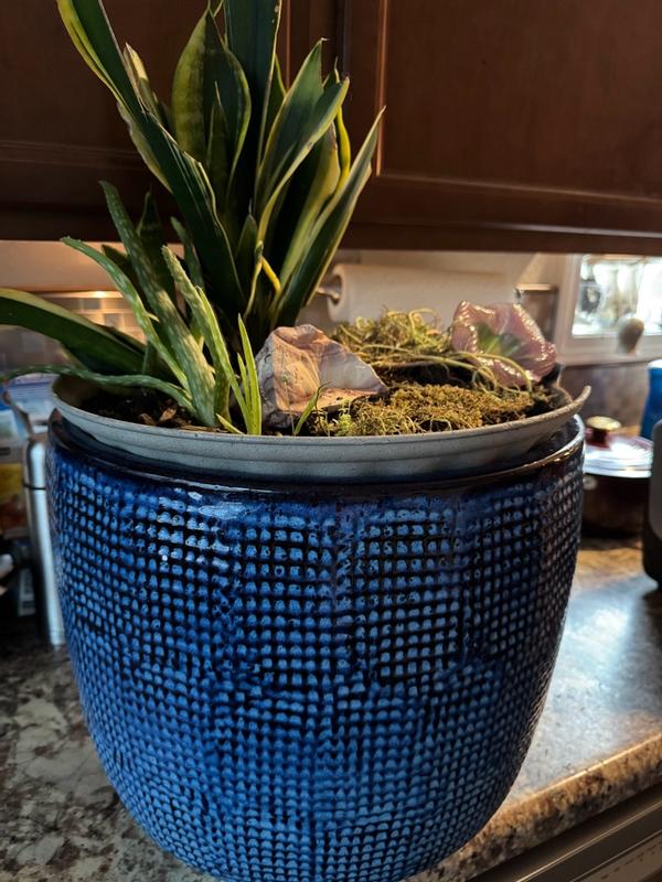 This is an absolutely beautiful pot! The color is so rich and vibrant, and the texture is gorgeous. It is super heavy and seems really sturdy. It is very large so I did decide to put a smaller pot inside of it to winter over instead of filling it with dirt because I don’t think I’d be able to lift it.