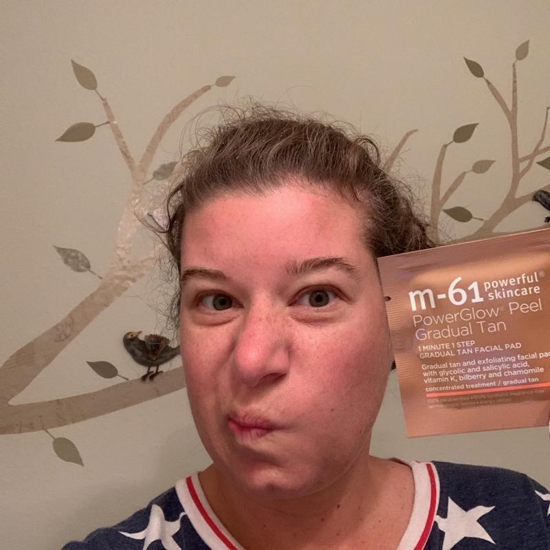 I am in love with the M61 power pads so I thought this would be the answer to my prayers when the power pads remove my sunless tan. They are way too orange and the smell is really strong. They also leave my skin very oily. I gave 2 stars because it does give color, just the wrong tone.