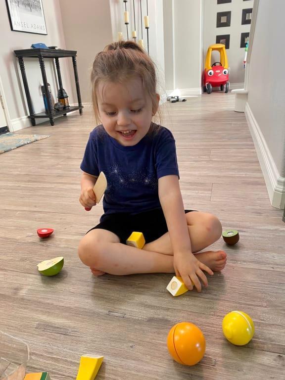 My Granddaughter loved it first gift she opened and played with very nice colors of the fruit were beautiful