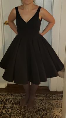 This is a very nice dress, very well made. But not what I thought it would be. I thought it would be flowy and get wider when you spin or dance but it has many stiff layers that will keep it in the dress up the whole time. Even when you sit. There is also a stiff net stitched to the hem for keeping the shape of ruffles. The dress that was shipped to me had this net bent so ruffles were squared rather than rounded. The size is also tiny! I I'm usually 0 or 2. Ordered this dress in 2 and couldn't zip it at all. Also, I don't think it would work for short people. It looked odd falling below my knee.