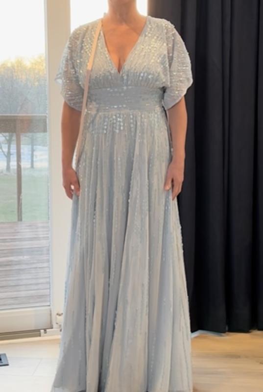 Ordered four dresses for my daughter’s wedding and this was my least favorite. The v was too deep and the sequins was more childish than exquisite like other Mac Duggal gowns. This one definitely didn’t seem as formal either. I did like the way it flowed. Fits a little bit big.