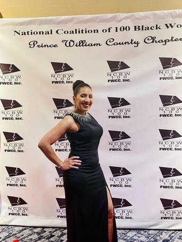 This gown is a stunning form-fitting column gown that exudes elegance and sophistication. One of the standout features of this gown is the exquisite rhinestone-embellished collar. It adds a touch of glamour and sparkle to the overall look, drawing attention to the neckline.