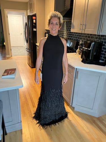 Women's Jersey Halter Gown with Feather Tiered Detail
