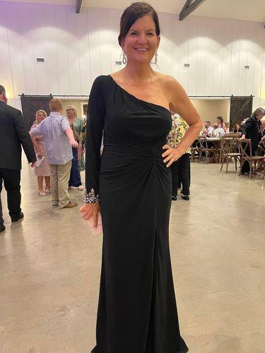 I wore this beautiful gown to a Black Tie Wedding and received so many compliments! The design, color, luxe fabric, fit is perfect. I love Mac Duggal's unique trending and sophisticated designs. I wore size 6 (I'm a size 8 & 10) Color: Ocean