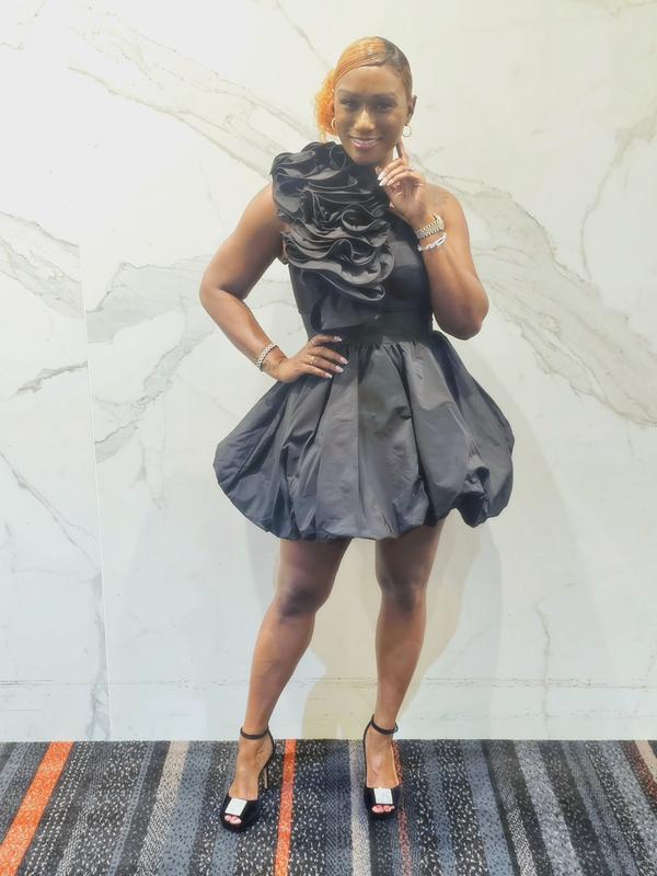 Mac DuggalWomen's Taffeta One Shoulder Ruffle Bubble Mini Dress