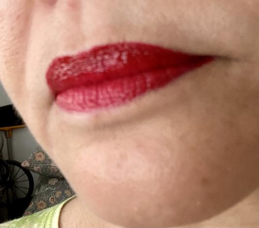 This is a wonderful shade that seems to last quite a long time. It is a little liquid(ish) so glide on carefully, but it's worth it. Great color!!