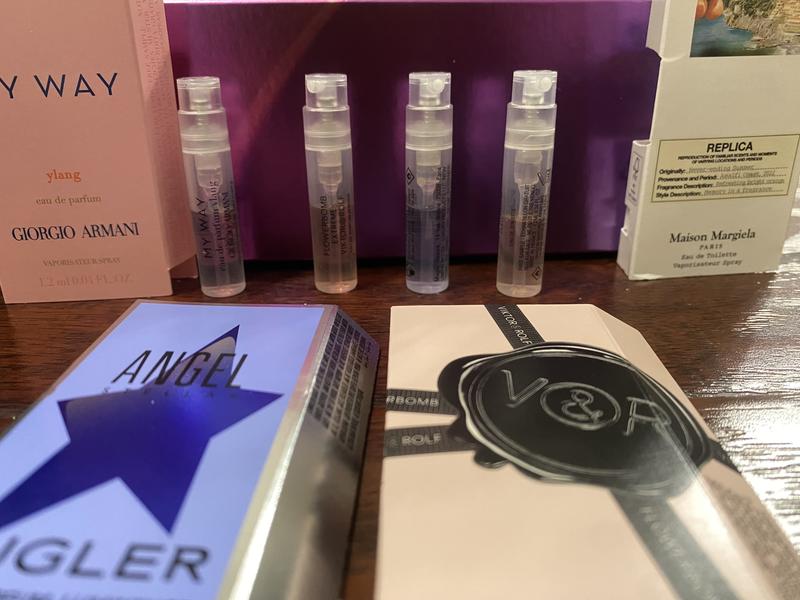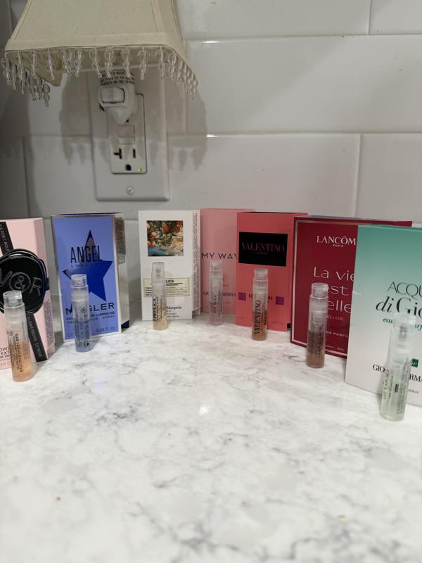 I purchased this package of 18 perfumes as entertainment for 3 granddaughters to smell & use the small sample on their skin see how each individual perfume actually smelled on their own skin. The selection of fragrances Macys chose for this presentation was outstanding!! My congratulations to the person that chose fragrances - for a job well done !!