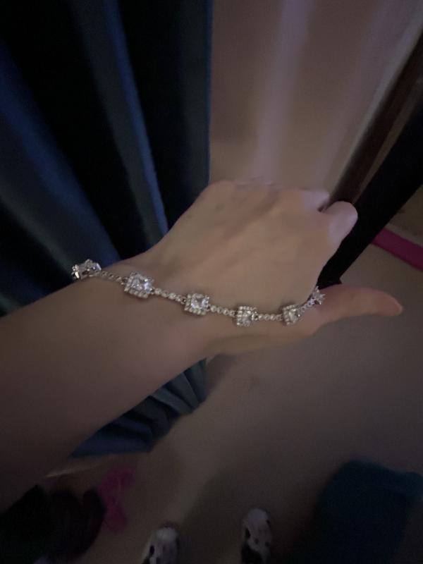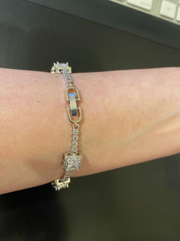 Cubic Zirconia Princess Cut Stones Halo Link Bracelet