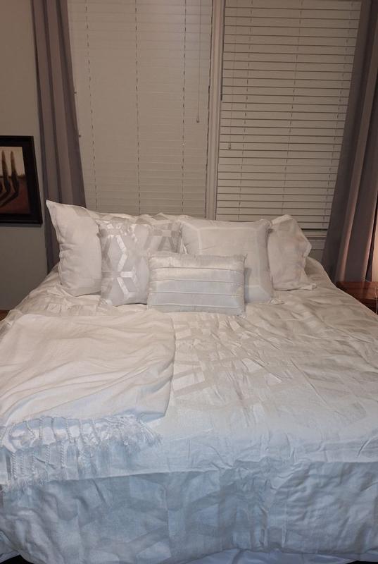 This Sunham Hexagon Queen size comforter set includes 14 pieces, including three decorative pillows. I really like the texture and pattern of the comforter. It kept me warm but is not too heavy. The included throw is a nice bonus. It's comfortable, and just the right thickness. Everything fit my queen bed without difficulty. The pillows also have an appealing design and everything just flows well. I received this product in exchange for my honest review from Influenster.