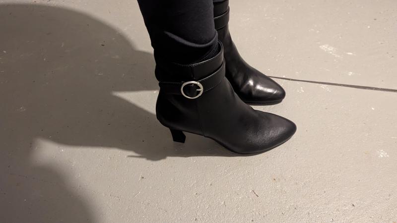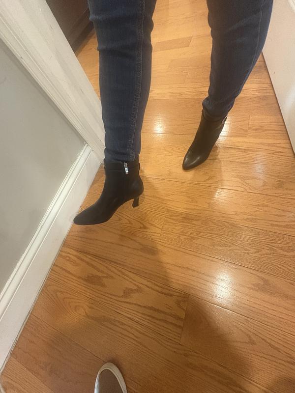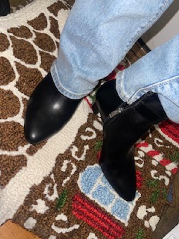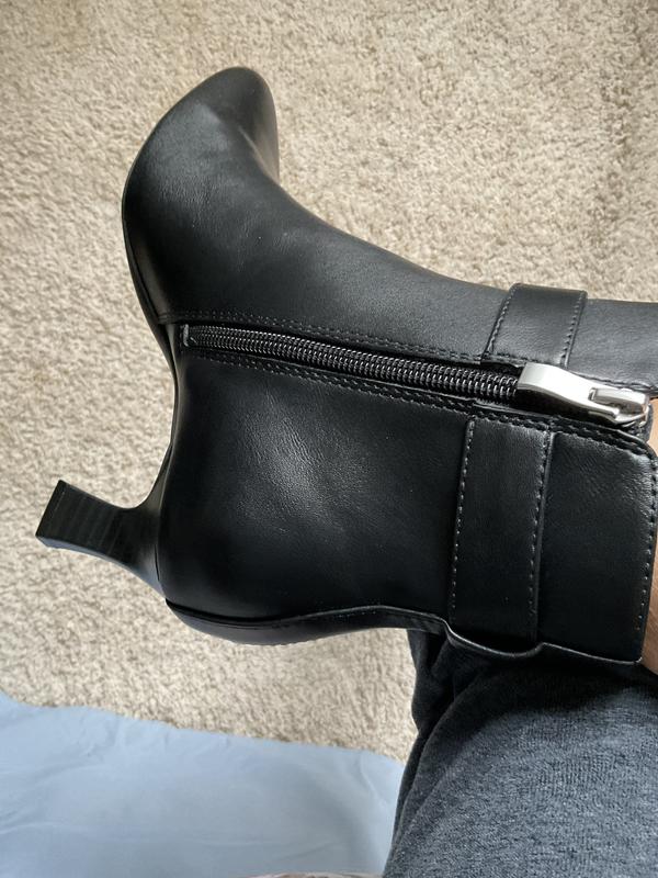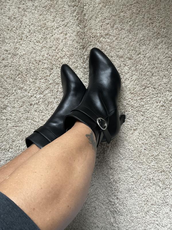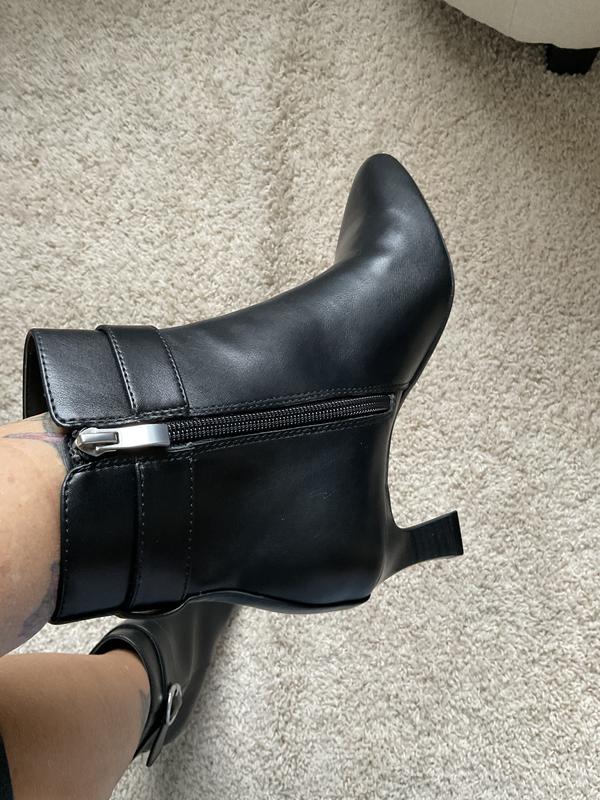 These are my go-to work booties courtesy of Style & Co. The classic black color makes them super versatile - they go with almost all my work outfits and look great with slacks. Thanks to the memory foam cushioning, they’re really comfortable, so I can wear them all day without any issues. Even though I mainly wear them for work, I think they look best paired with wide-leg, bootcut, flare, or baggy pants/jeans. The design of the booties is simple but stylish: an almond toe, about a 2-inch stiletto heel, and a side zip closure with a matte silver zipper. There’s also a matte silver round buckle detail on the side that adds a whimsical, but nice touch. Overall, Style & Co’s booties are comfortable, stylish, and perfect for everyday wear at the office.