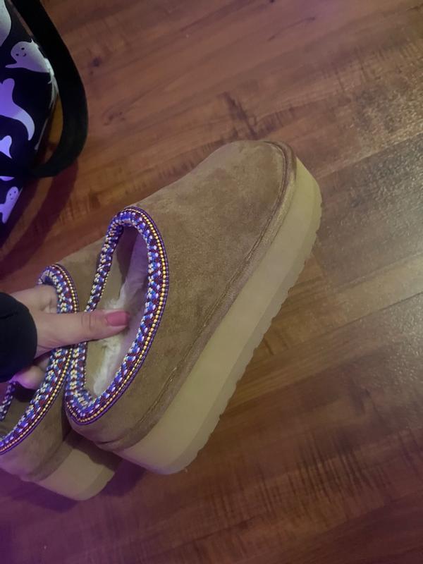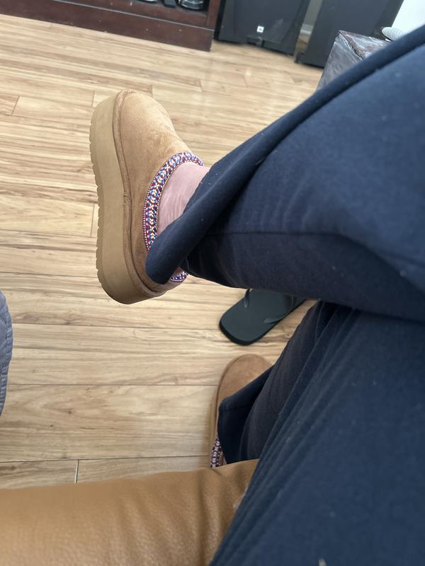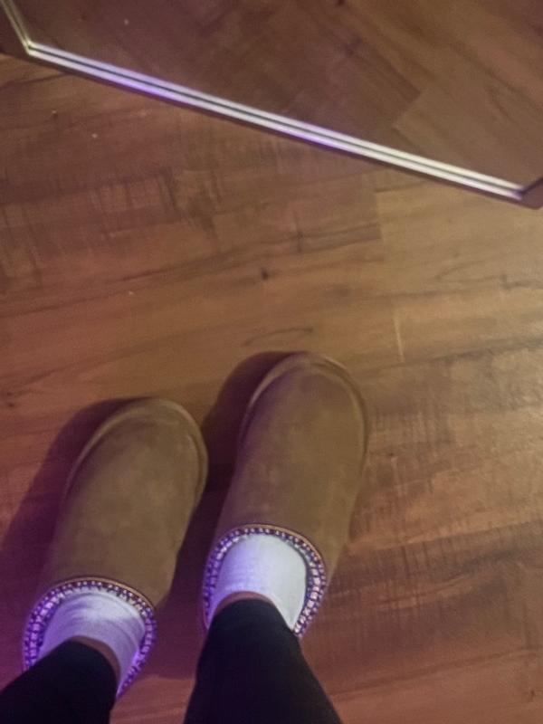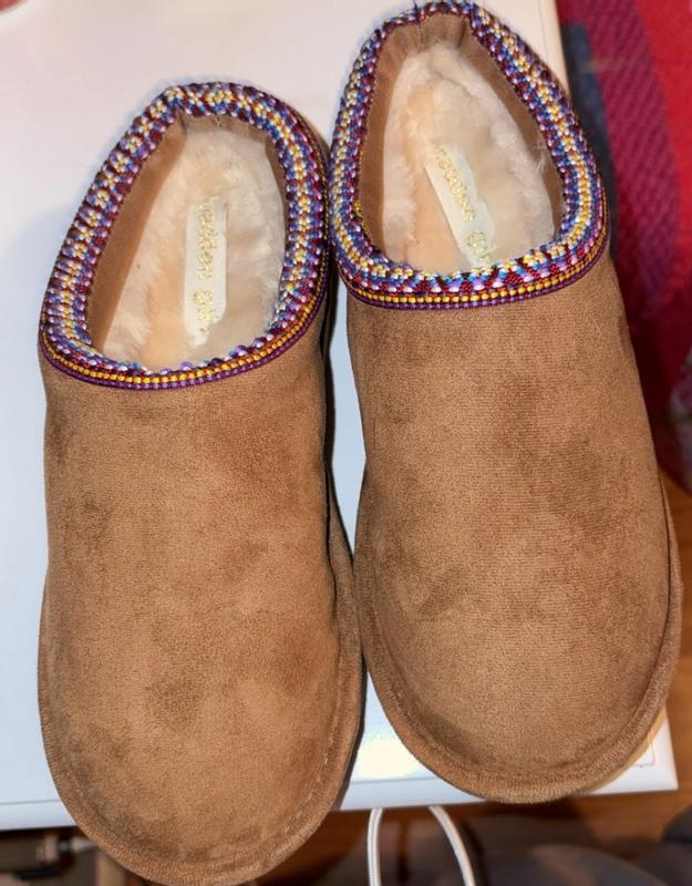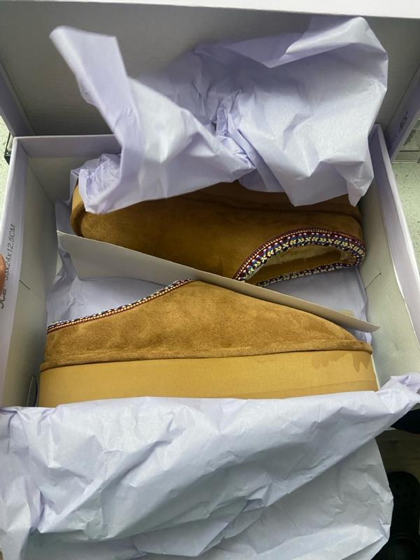 This is no true to size ! I bought a 7 and super tight…. Lots of furr inside !! Can’t slip on