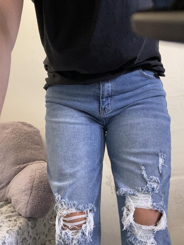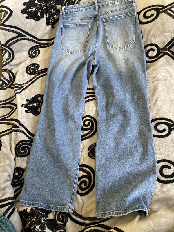 Juniors' Super High Rise Distressed 90s Wide Leg Jeans