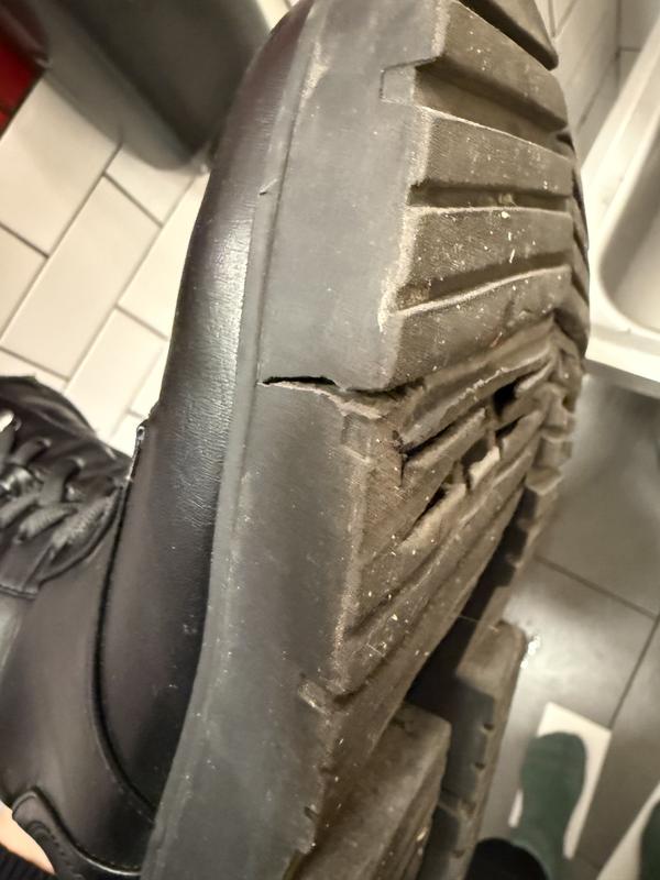 I looked and looked for a lug sole combat boot with a zip and could not have been more surprised to find one here but this is a great boot. It’s plastic, but feels pretty good and is very comfortable. I think I may actually need to buy a backup pair, especially at this price given how useful a waterproof boot with good traction is all winter.
