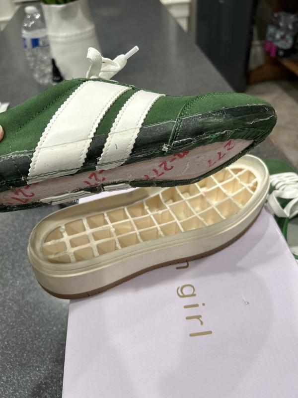 I received what appeared to be either the display model or returned shoes. One shoe was covered in glitter, the other shoe had scuff marks on the sole. I’ll be returning these. Luckily they were still on sale so I reordered because I like the style of the shoe.