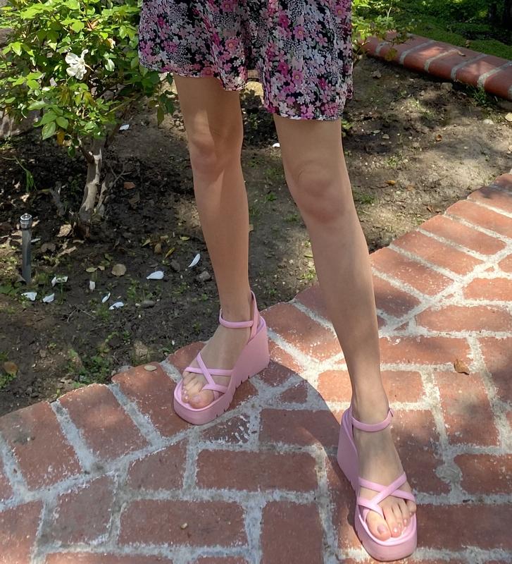 • 3-1/2" wedge heel; 1" platform