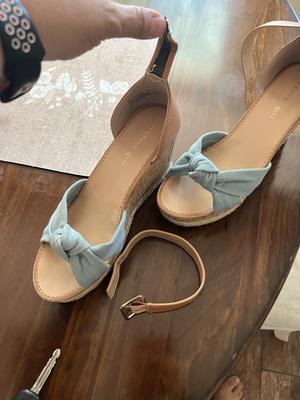 I really like this shoe. The wedge is great you really cannot feel how high the heel is and you gain some good height. Great with any length pair of pants or skirt. BEWARE of the back of the shoe where the strap goes around the ankle. It RUBS the back of your ankle. I find a solution for ME (it might not work for everyone), but it is to wear the strap as loose as you can. I find them to be pretty comfortable once you loosen the strap around the ankle. I hate not being able to give it 5stars but that rubbing is an issue for me.