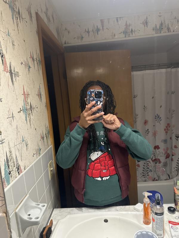 Good quality puffy vest. Material feels nice. Good length. Teenage daughter loves it.