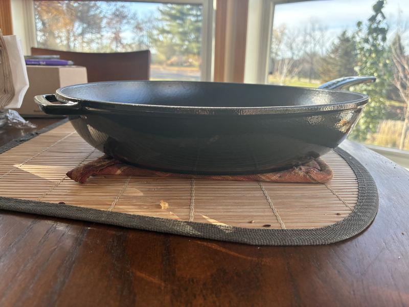 I wanted a cast iron skillet but I didn't want to have to worry about seasoning or keeping it seasoned. So I was happy to see this was exactly what I wanted. I have lots of made in pans in stainless steel and non stick. So this was a new type for me. The helper handle makes it easy for me to lift. I like the fact that I can sear something and then finish it in the oven. It isn't too big and it isn't too small.