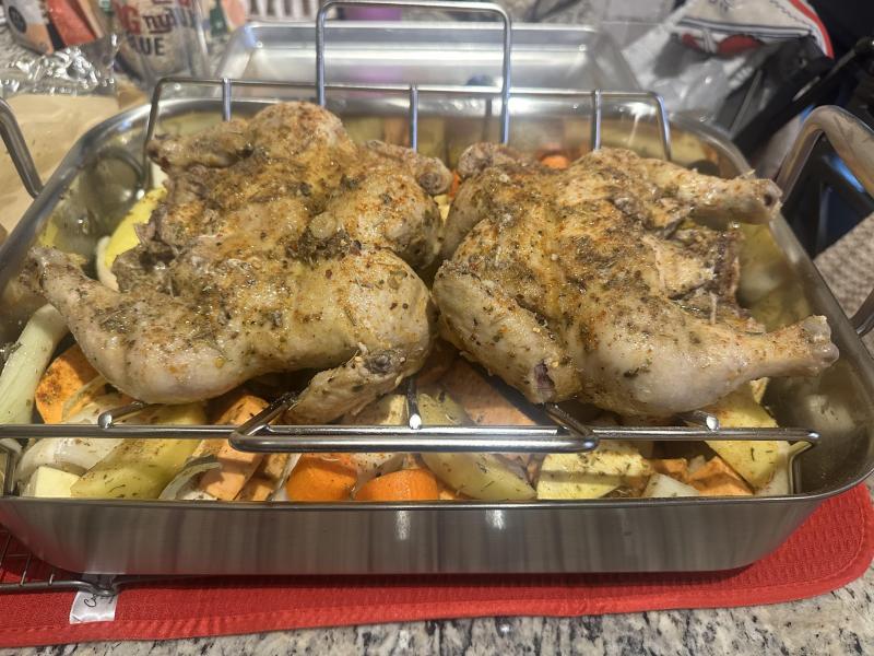 The roasting pan is so solid and made well! It’s large size will accommodate large pieces of meat!