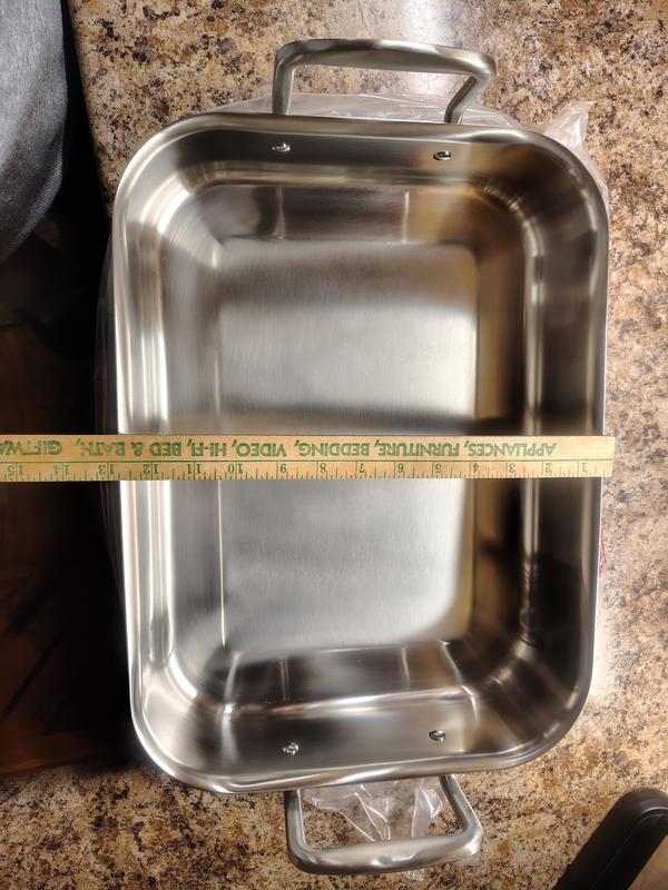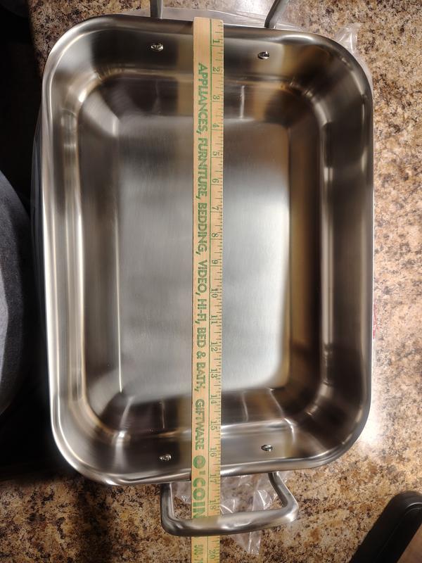 This pan is outstanding quality HOWEVER buyers beware...the size is not as advertised. Pan is actually only 17"L x 12 1/2"W x 3 1/2"D. It's advertised as 17"L x 18.45W" x 6"D. When I got the pan, I re-ordered it thinking they mistakenly sent me the wrong pan. New pan arrived today and it is the exact same size they sent me the first time. Advertised size is way off. Description of pan size is much larger than actual pan.