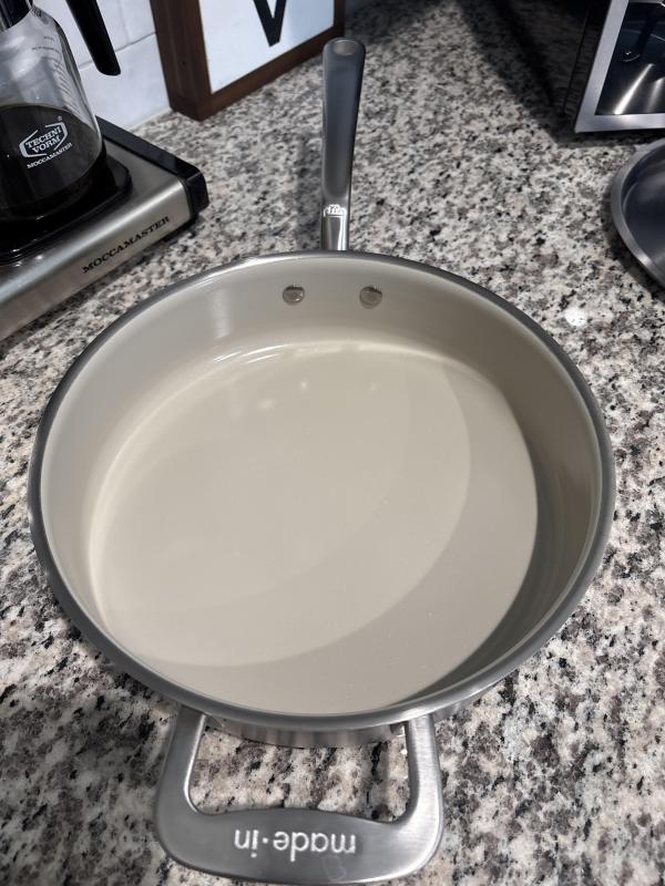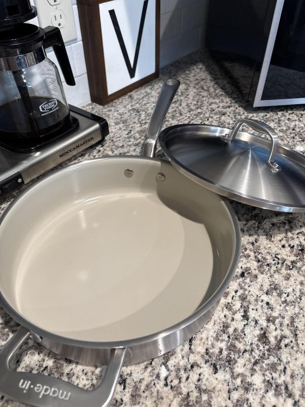 Love the size of this saute pan! I have their blue non-stick of this version and my daughter claimed it, so this is the perfect replacement! Heats evenly and great for my everyday use! Highly recommend!