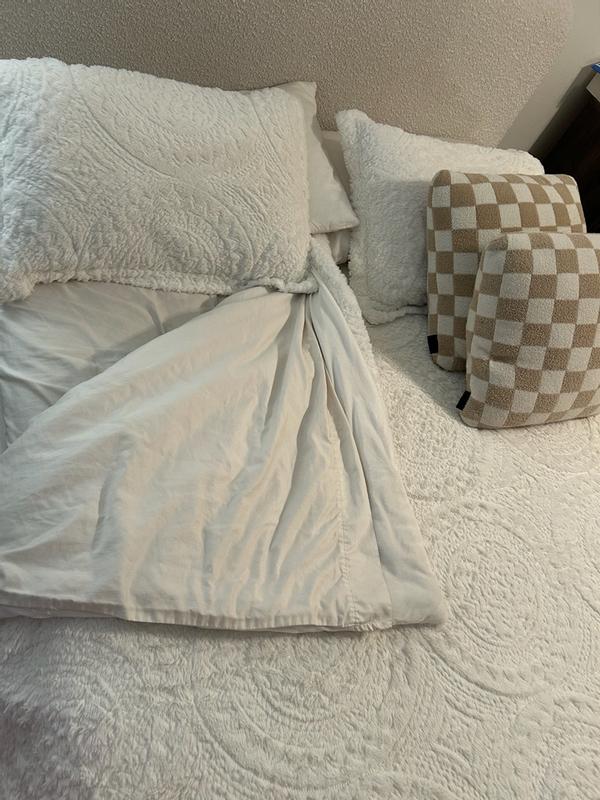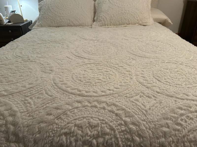 This Madison park comforter set is literally perfect!! First of all just look at it, It’s beautiful! I love the light ivory color and the Mandela design is top tier. I was worried about shedding because of this comforter being furry but I’ve had zero shedding since using it for the last week. This set is really amazing quality. And it’s a perfect fit for my full size bed. It fits like an oversized full and I love that. I would highly recommend this comforter set to anyone. It’s way better than I expected it to be. My husband even likes it!!