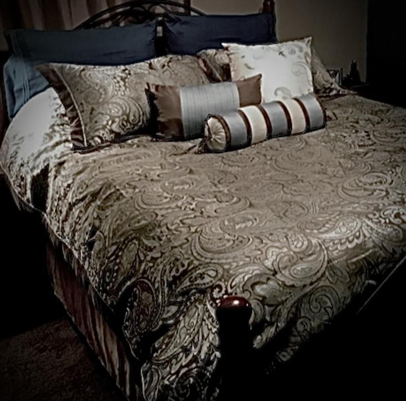 So excited for this king duvet set in aqua blue and brown the texture and color are beautiful very happy with this piece and matches perfectly in my bedroom