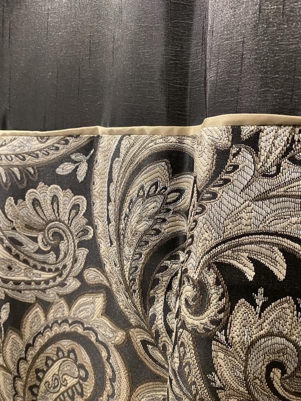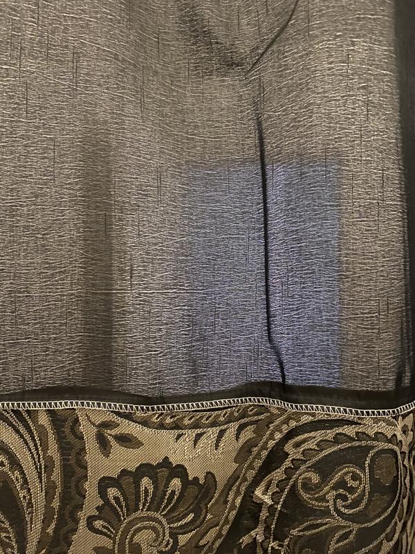 Very nice quality fabric curtain displaying a paisley pattern. Definitely recommend. The color is rich and darker in color! Love the pattern but wish the length was a little longer. It's intended for a shower but I use a pair of them in my RV to divide space. They really made the space look luxurious. I'm not sure they would make a good shower curtain but they work well for home decor.