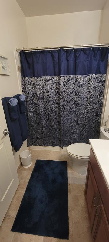 This shower curtain is of high quality fabric. It was easy hang on the curtain rod. The design is water-resistant, and it is very beautiful and elegant. I ordered the navy blue one and I think it looks great in my bathroom.