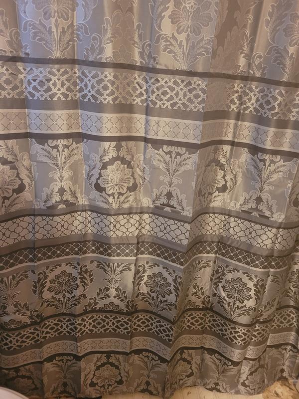 I absolutely love this shower curtain. I just opened it up and it’s such nice quality material. The design is gorgeous and timeless and fits perfectly with my bathroom. Water doesn’t go through it at all which is amazing so there’s no mess.