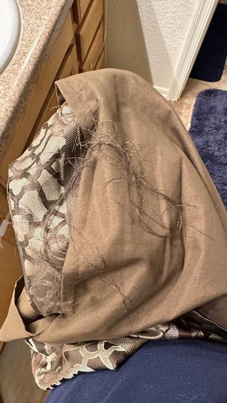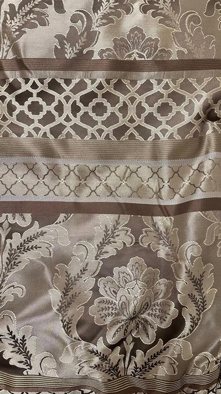 This spread complements the wood and leather of our bed better than any spread has. There is a subdued metallic hue in the colors. It’s a rich look! I love that it is easily laundered, our small dog gets on it and we like to keep it clean without the expense of dry cleaning. I imagine the fabric may snag if the dog is allowed to scratch it repeatedly in the same place but that is proving not to be an issue as long as he’s supervised.