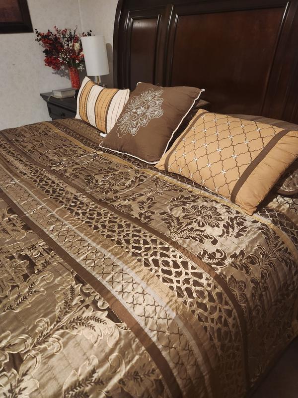 This beautiful quilt and pillows set really gave our bedroom a refreshed look. The fabric is very high quality and has a variety of colors.