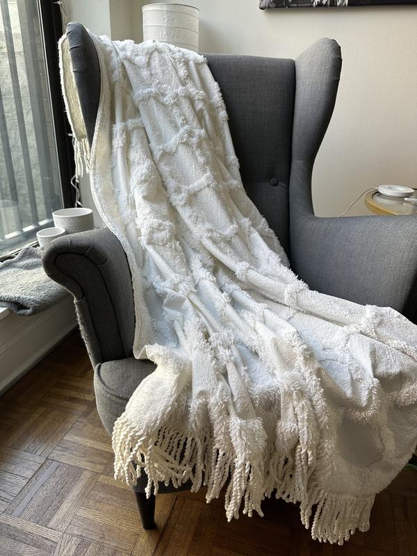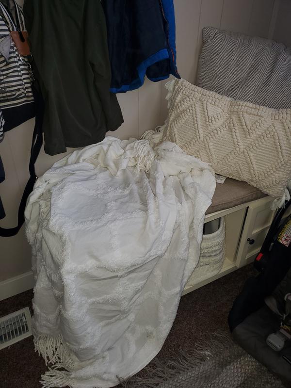 This is by far my favorite throw. The tufted chenille is so soft and inviting. I love that it is 100% cotton. I can't tell you how much I look forward to coming home and grabbing this throw to watch Netflix and chill. It just seriously gives you a big hug at the end of the day.