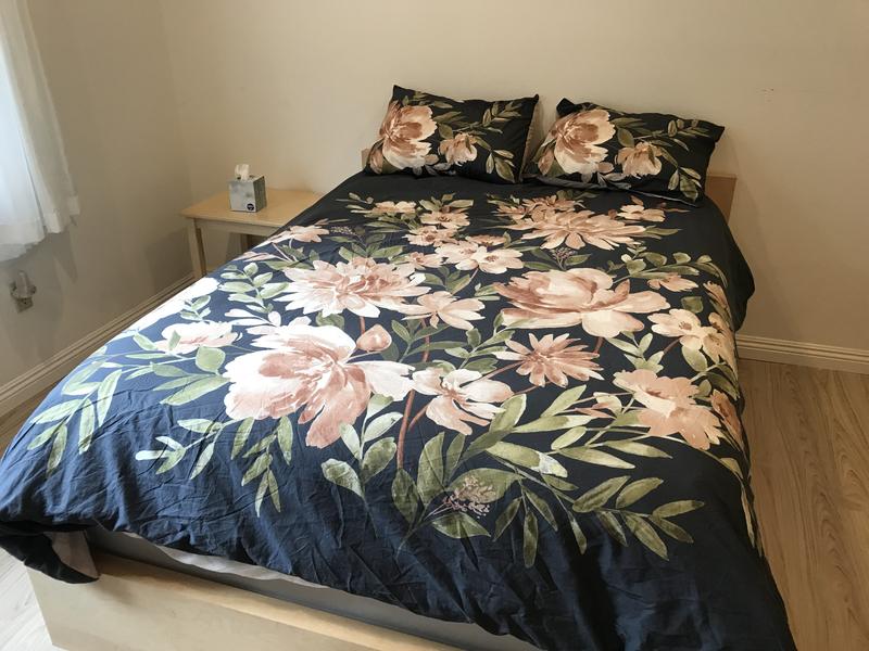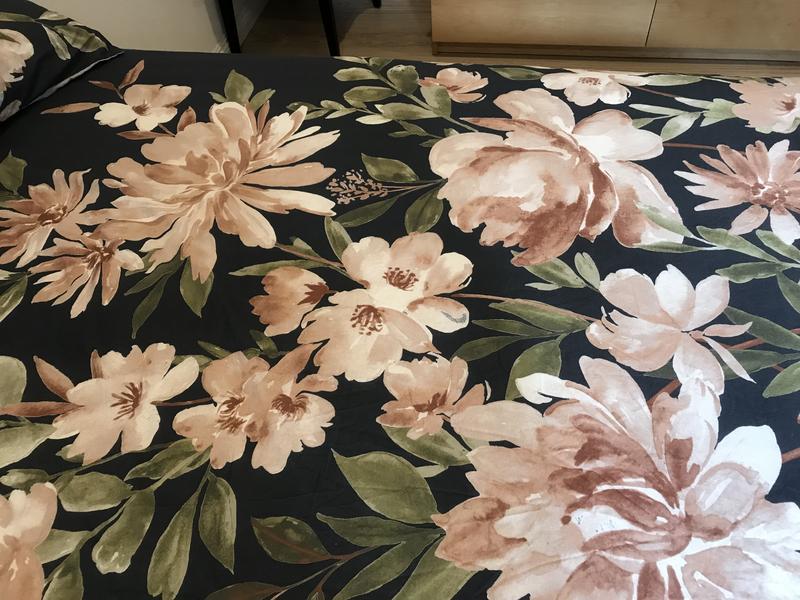 The Madison Park - Camillia 3 Piece Cotton Duvet Cover Set was such a beautiful change to the bedroom. I love that it comes with the pillow covers as a set. The cotton material is light and easy to clean. I really like they dark contrast of the design from flowers to soft pink pillow covers and back of duvet.