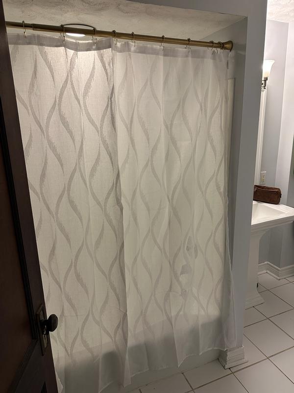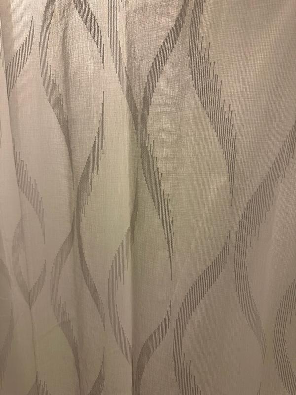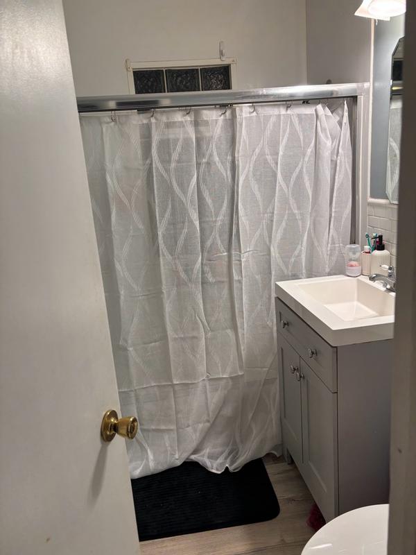 Simple yet classy shower curtain. It is made of cloth so it does require a shower liner. It was easy to set up and move easily when slid. It’s a simple pattern but has some varying texture. The value is about there but it could be slightly thicker.