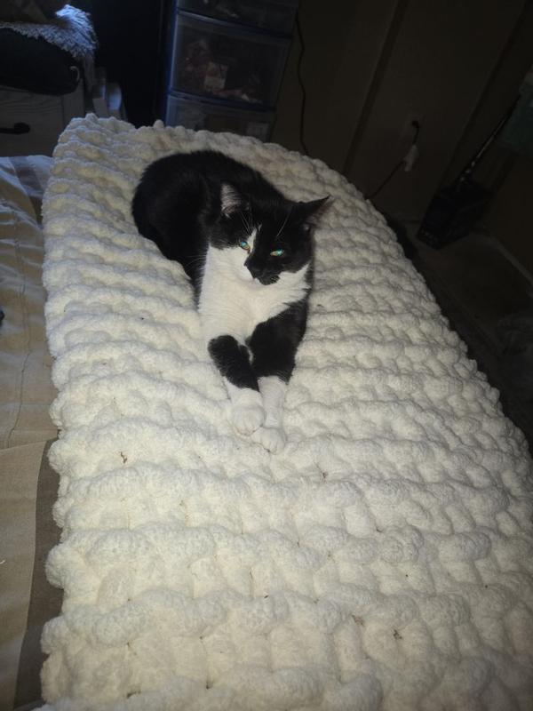 This chunky knit blanket is so soft and so wonderful. I can barely get my dogs out of bed in the morning. Let alone myself. I highly recommend this item.