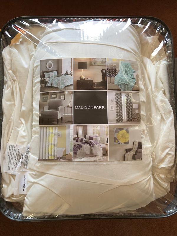 Beautiful comforter set. Looks so think but not too heavy. The white gives the room an clean look. Just can add pillows for a whole new look occasionally! Really happy with this product.
