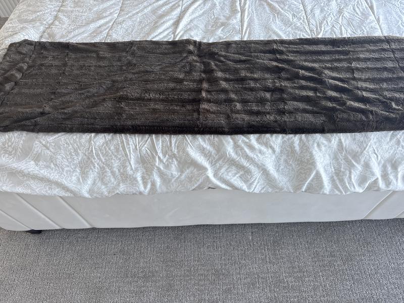 My kids are always stealing my blankets and now this one has been added to the list of blankets they fight over. It’s SO soft and luxurious. It’s a great size for one person. I like to use it on the couch as a lap blanket and on cold nights I’ll lay it on my side of the bed for extra warmth.