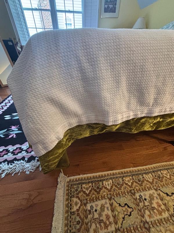 This blanket feels so soft and luxurious. It’s lightweight but still cozy, and the cotton breathes really well so it’s comfortable year-round. The size is perfect for a queen bed and it adds a nice, clean look to the room. Definitely impressed with the quality!