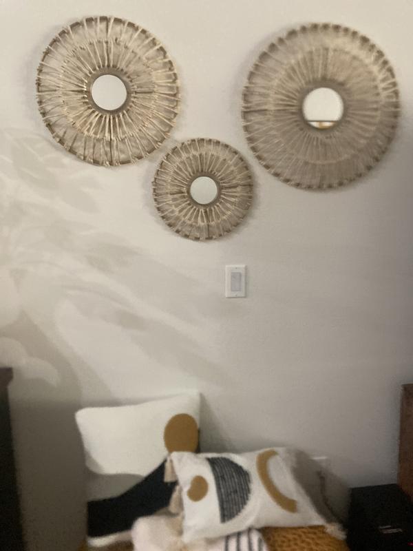 I love these 3 corn leaves wrapped decor mirrors. They look very chic and go with about any wall color. My daughter loves th eff m so much she wants them for her room! Very easy to hang and they stay in place. I highly recommend getting them!