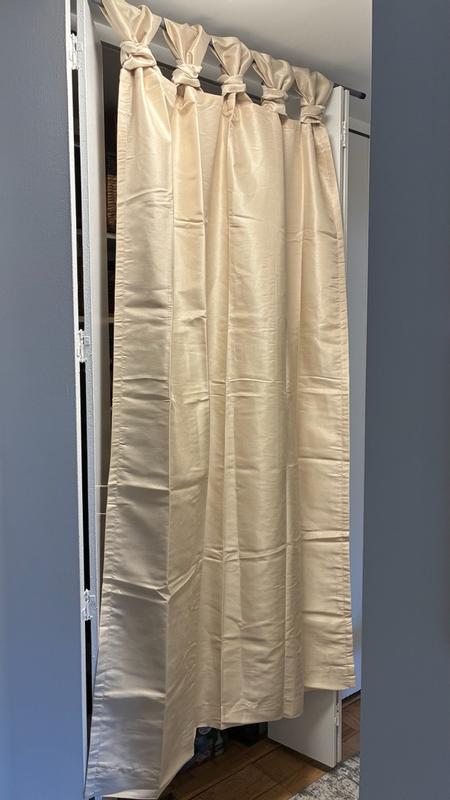 Beautiful golden champagne color floor length curtain works great for needing that day time nap does great with blacking out the area that is needed