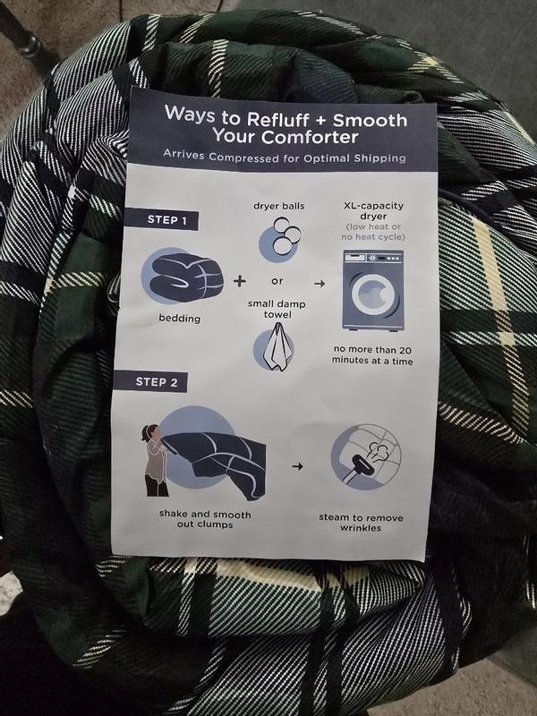 Very comfortable and high quality comforter! It's very warm with it's filling and a perfect fit for my husband and I. Love the plad on it as well! Highly recommend