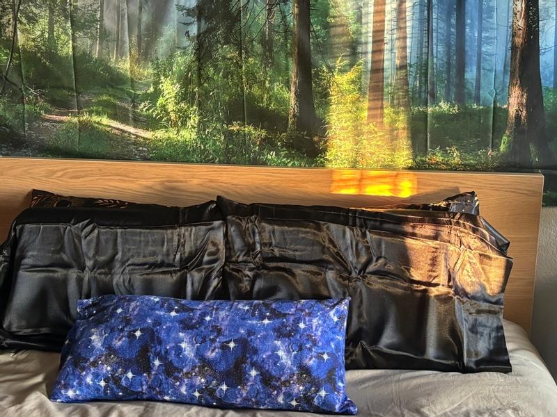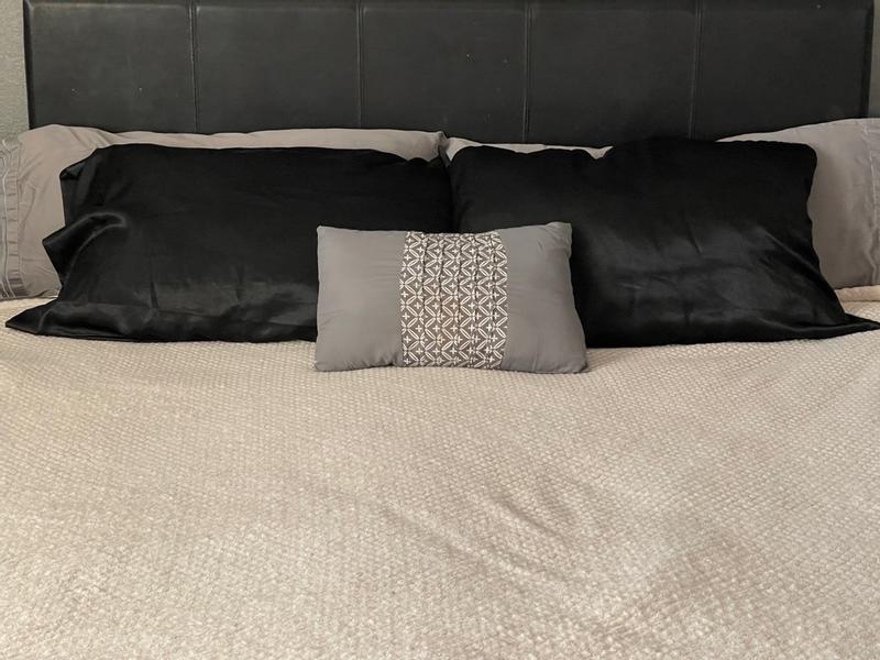 I absolutely love these pillowcases. The black satin goes perfectly with my other decor, but more importantly. They’re very soft and comfortable to sleep on. They also tend to leave my hair with less morning frizz than regular cotton pillowcases.