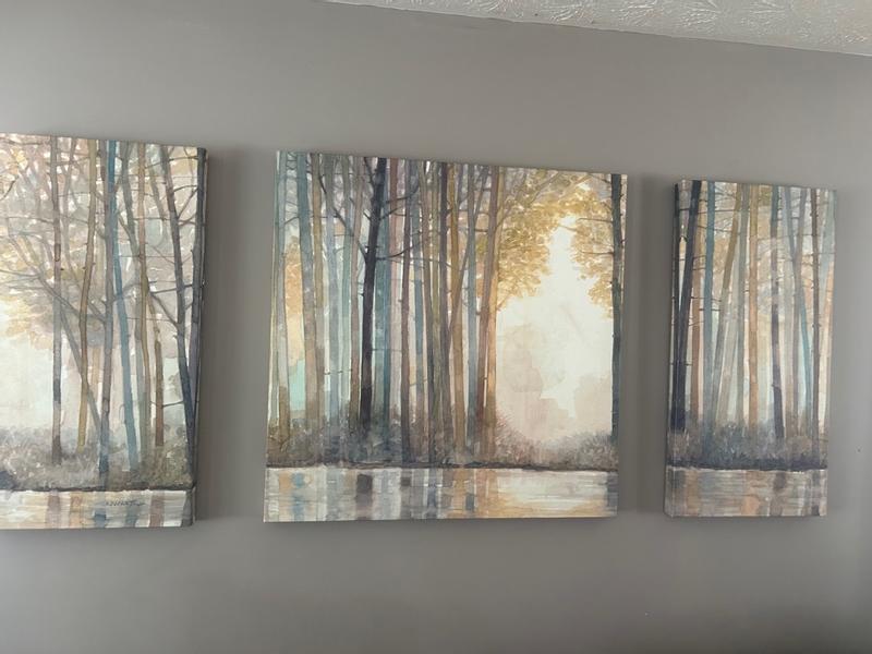 I had been on the hunt for something nice to go above our bed in our master bedroom. I was looking for something big enough to cover most of the space but in neutral colors. This canvas set is absolutely perfect. It goes well with my color palette and the size is perfect. It makes the room feel more put together.