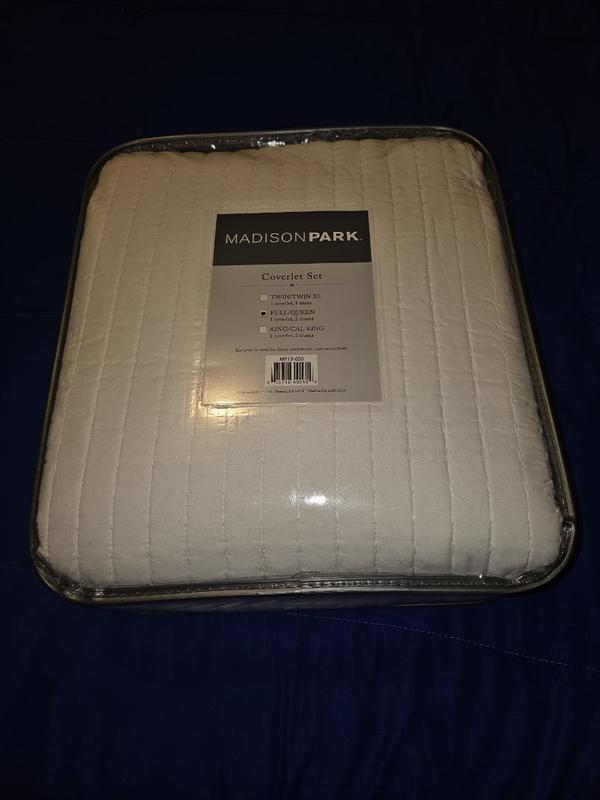 Has a very nice texture and soft feel. The white does show if you get any tiny crumbs or fuzz on it but I don’t mind that, just lets me know when it’s time to wash it. It’s warm but not too warm and it’s got some weight to it. On super cold, snowy days I have to throw on an extra blanket on top, but I’m usually comfortable with it and my sheets alone.