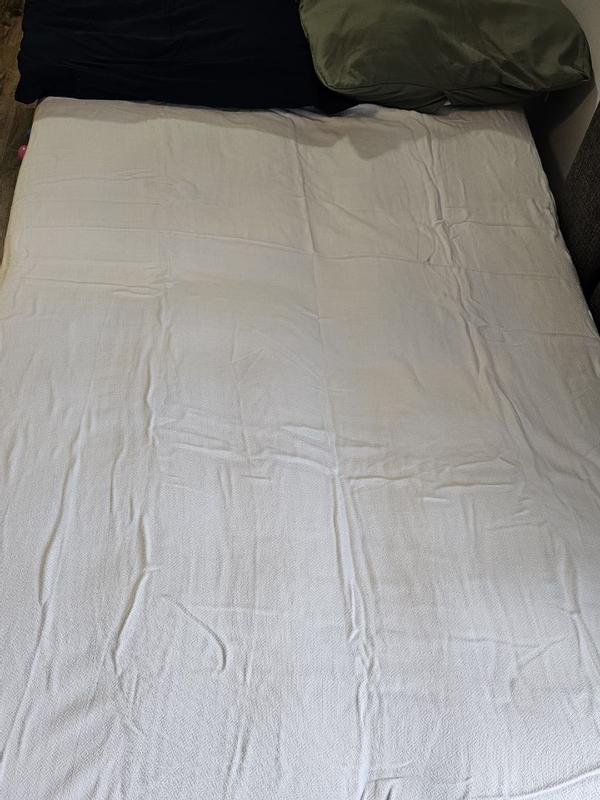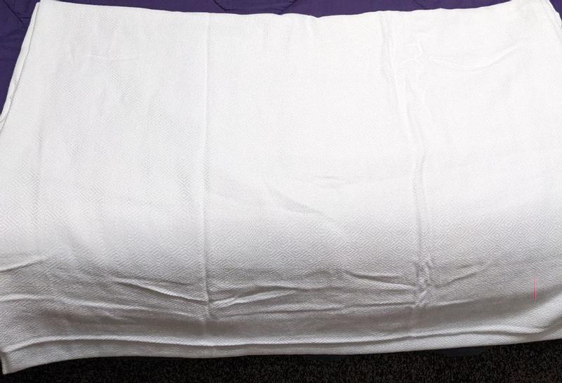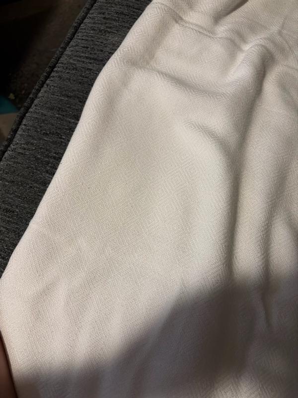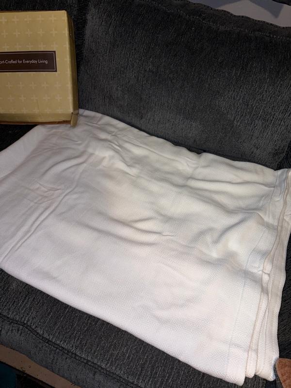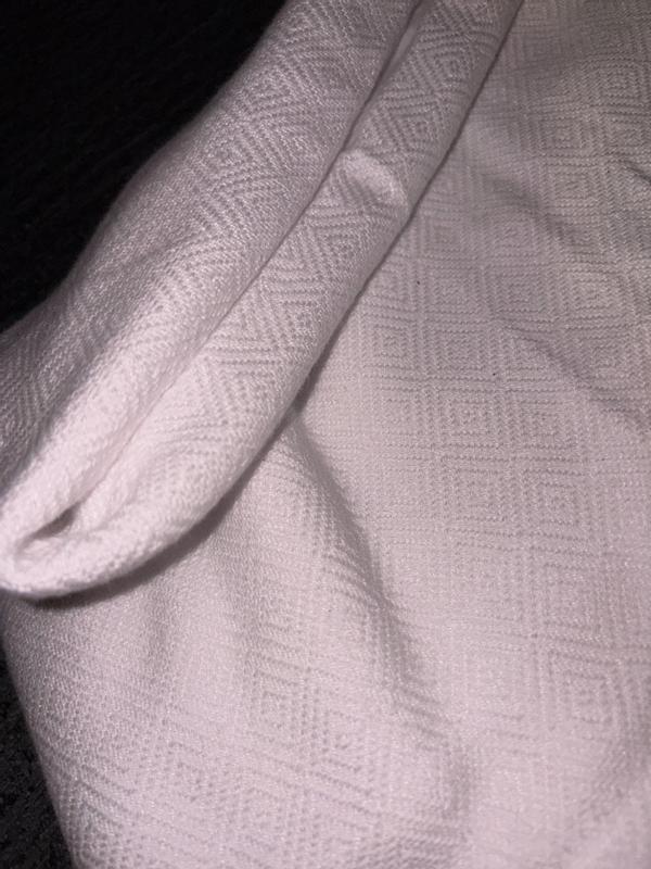 Absolutely love how bright white this blanket is. The pattern is subtle as well which makes the room feel clean. It is the perfect weight, we didnt get hot or cold.