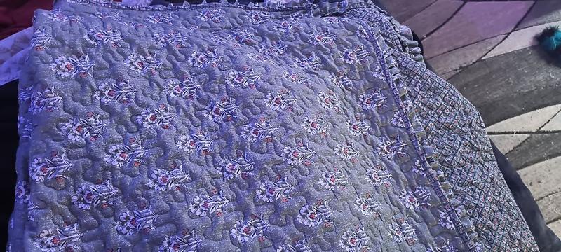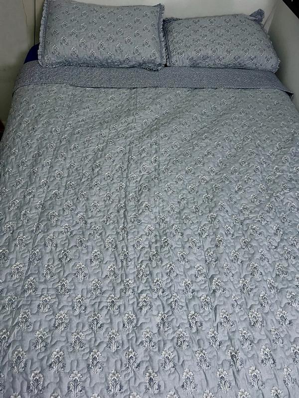 This quilt is so incredibly soft, and it’s nice and cool. It makes my room stand out in a good kind of way. My baby really likes laying on it and rubbing her hand to see how soft it really is. It’s a nice blue color, and stays the same when washed.