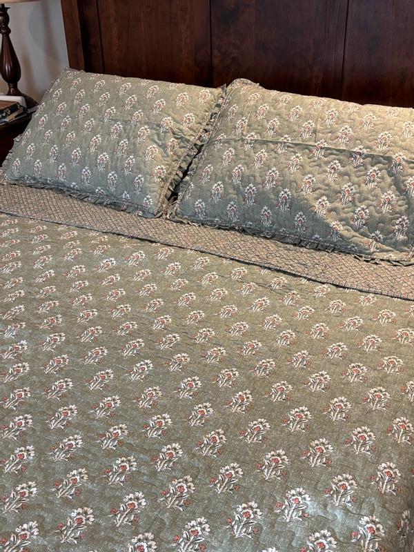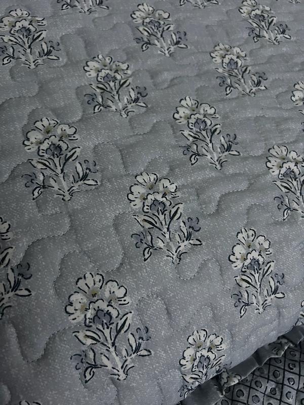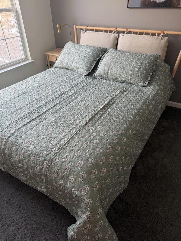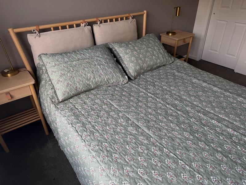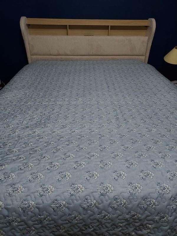 The set was a good match to what I wanted, but the quilt stitching was terrible. It had an 18 inch thread that was fastened on both ends, but no stitching in between. (Big enough to run a leg through.} Quality control failed on the job. Marked the problem with safety pins with a yellow ribbon tied in several places, so it wouldn't be missed. I found it by accident running my hand across the quilt. Hope to try to order one more time. A recommendation to follow if the next works.