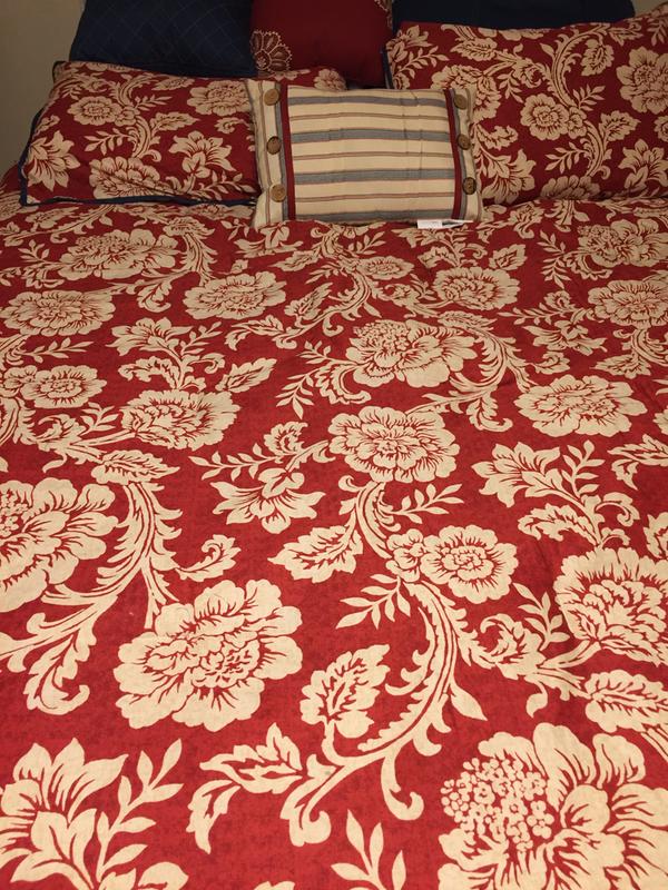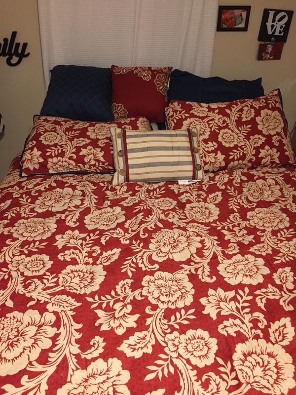 The Madison Park Lucy 9 Piece Cotton Twill Reversible Comforter Set is very beautiful, stylish,trendy and has great quality. Its really efficient in the winter time because of how warm it is. I love the color it came it,which is red and the decorative pillows is a plus to it. The pictures actually didn't justify its beauty. Its more beautiful in person than the pictures. Its wide enough and no threads pulling out at all. I will recommend this product absolutely